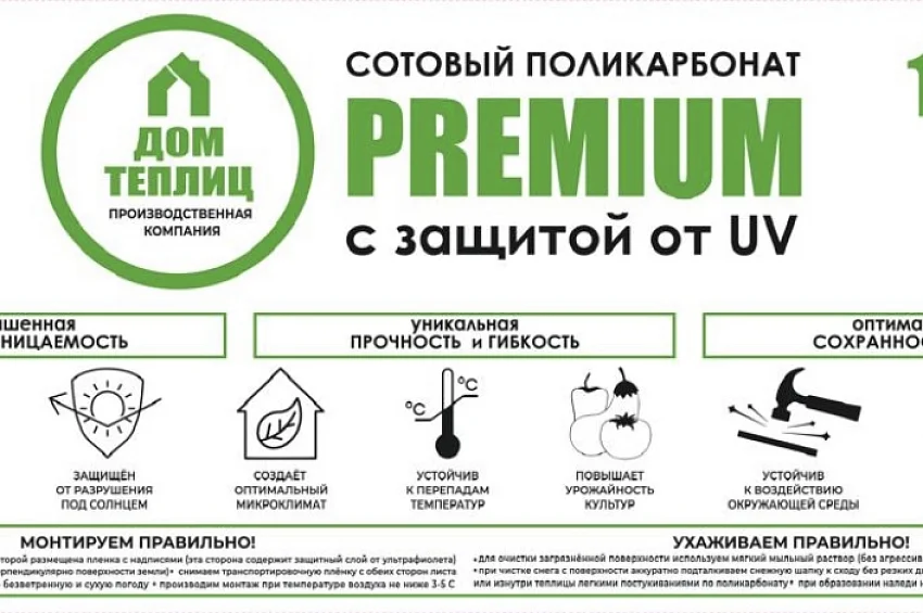 Уход: Ухаживать за сотовым поликарбонатом достаточно просто  – достаточно мягкой губкой, смоченной в теплой мыльной воде, протирать периодически всю поверхность теплицы от пыли.